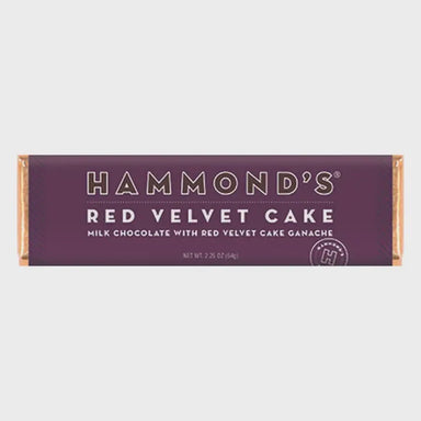 Satisfy your cake cravings with Hammond's Red Velvet Cake Ganache Chocolate Bar. This Belgian milk chocolate candy bar is filled with a rich and de...